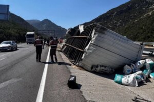 Antalya’da tır devrildi, ortalık savaş alanına döndü: Genç sürücü hayatını kaybetti