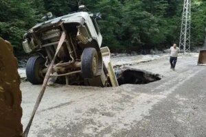 Kaza, öğlen saatlerinde Arhavi ilçesinde meydana geldi. Bölgedeki yağışların akabinde meydana gelen heyelan nedeniyle ulaşıma kapanan Mençuna yolunun tamir çalışmaları sırasında Vilayet Özel İdaresi’ne ilişkin bir kamyon, yol kenarında oluşan göçüğe düştü. Kazada, kamyon şoförü yaralandı. İhbar üzerine olay yerine sıhhat takımları sevk edildi. Yaralı şoför, olay yerindeki birinci müdahalenin akabinde ambulansla hastaneye kaldırıldı.