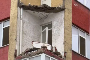 Edinilen bilgiye nazaran, yaklaşık 3 ay evvel karot örnekleri alınan ve riskli olduğu gerekçesiyle tahliye edilerek yıkım kararı verilen binanın 5’inci katındaki dairenin balkonu çöktü.