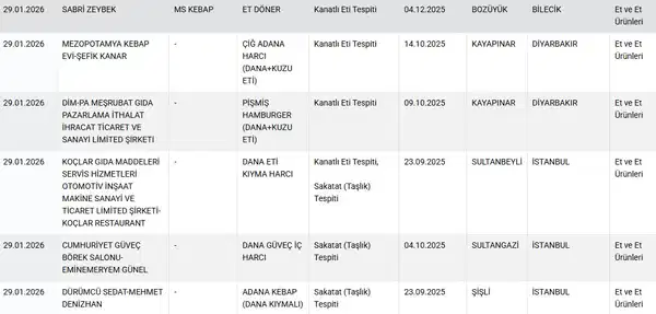 Bakanlık marka marka ifşa etti… Dana etinden ‘sakatat’, et dönerden ‘kanatlı eti’ çıktı!