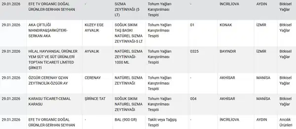 Türkiye’nin tamamında yapılan denetlemelerin akabinde kapsamlı bir liste yayınlayan Tarım ve Orman Bakanlığı, taklit ve tağşiş eser satışında bulunduğu ve sıhhati tehlikeye düşürdüğü tespit edilen firmaları kamuoyuna duyurmaya devam ediyor.