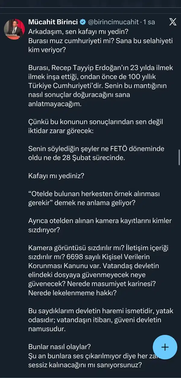 Mücahit Birinci, açıklamasında bu cins adımların “devletin namusunu” tehlikeye attığını, halkın inancını sarstığını ve toplumda travmalara yol açtığını söyledi.