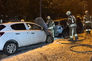 Bu sırada arabadan yükselen alevler kısa müddette üç arabaya sıçradı. Olay yerine gelen itfaiye takımları, alev alev yanan arabalara müdahale etti.