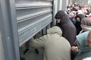 Yüzlerce yurttaşın birebir anda içeri girmeye çalışmasıyla vakit zaman güç anlar yaşanırken, vazifeliler kalabalığı denetim altına almaya çalıştı.