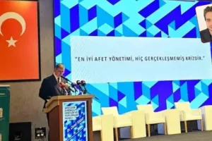 Daha sonra konuşmasını yapmak üzere kürsüye çıkan Tugay, “Yaşadığımız coğrafya afetler açısından şanssız. Yurttaşlarımız, çeşitleri farklı olsa da çabucak hemen her yerleşim yerimizde farklı afetler ve acılarıyla yüzleşiyorlar” dedi. İzmir’de afetlere karşı alınan tedbirleri ve yapılması planlanan hizmetleri anlatan Tugay, “En âlâ afet tedbirinin öngörü olduğunu sık sık konuşuyoruz. Bu yüzden afet idaresini bir refleks alanı halinden çıkararak tedbir almaya odaklanmalıyız. Gerçek muvaffakiyet enkaz başında gerçekleşen kahramanlıklarla değil, yıkım öncesi alınan tedbirlerle gösterilmelidir” tabirlerini kullandı.