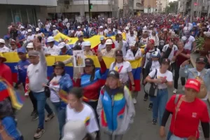 Başkent Caracas’ta Venezuela Birleşik Sosyalist Partisi (PSUV) tarafından organize edilen yürüyüşe binlerce kişi katıldı.