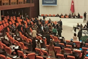 Kürsüdeki konuşmasını bitiren Sakık’ın DEM Parti sıralarına gittiği sırada tartışma büyüdü. İYİ Parti ve DEM Parti milletvekilleri sıralarından kalkarak birbirinin üzerine yürüdü.