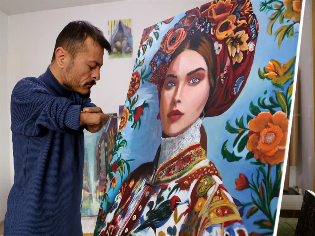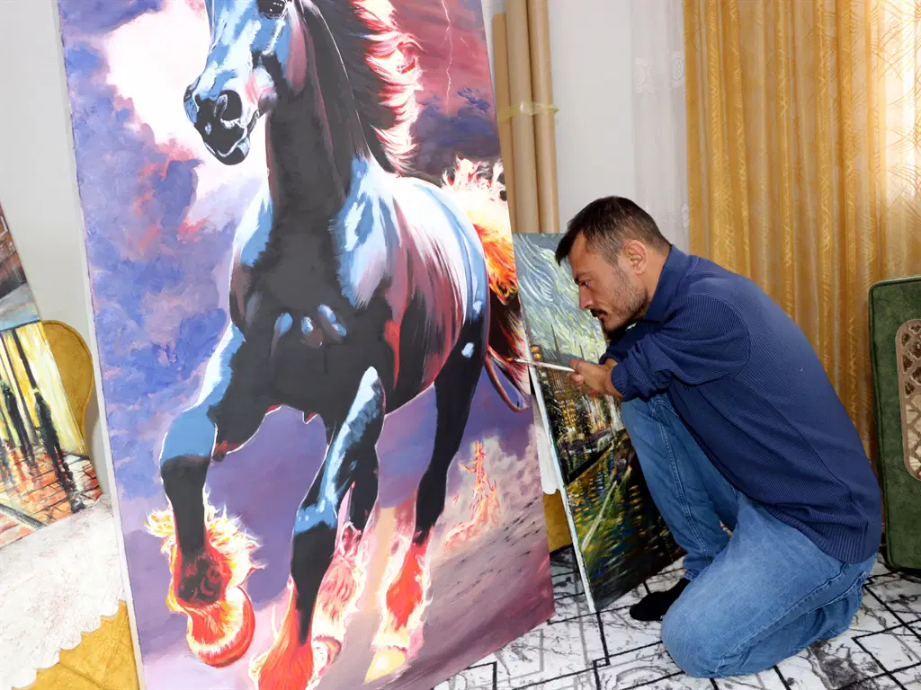 Dirsekleriyle çizdiği resimlerle hayata tutundu, siparişlere yetişemiyor