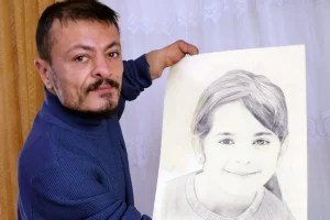 Van’da doğuştan iki eli olmayan Yüzüncü Yıl Üniversitesi (YYÜ) Güzel Sanatlar Fakültesi 4’üncü sınıf öğrencisi Vedat Kiyat (38), dirseklerine yerleştirdiği kara kalem ve yağlı boya fırçalarıyla çizdiği fotoğraflarla hayata tutundu. Toplumsal medyada paylaştığı fotoğraflara ağır talep olduğunu belirten Kiyat, siparişleri yetiştirmekte zorlandığını söyledi.