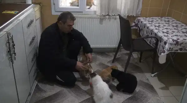 Ailesi ve çocuklarının da kendisini bu türlü gördükleri için mutlu olduğunu söyleyen Demir, “Onlar da benden daha bağımlı oldular. Daha hoş vakit geçiriyorlar. Onlar da eğleniyor, gerilimlerini onlarla atıyor. Ailece burada kedilerle iç içe yaşamaya başladık diyebilirim. Kediler sessiz de olsalar, lisanları olmasa bile bizim onları anlamamız lazım. Dondurucu havada dışarıda yemek bulamazlar, su bulamazlar. Şayet biz onlara kapıyı açmazsak, mamalarını, sularını vermezsek bu dondurucu soğukta katiyetle ölürler. Onun için onlara mümkün mertebede sahip çıkmamız lazım. Buradan tüm vatandaşlara davette bulunuyorum. Sizden ricamdır, kış kurallarında kedilere bir tabak su, bir tabak mama kapının önüne bırakırsak, en azından onları bu şiddetli kış kaidelerinde vefattan kurtarmış oluruz. Onlara bir yuva kuramazsanız bile mamalarını, sularını verelim” ifadelerini kullandı.