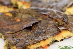Pideyi şekillendirin: Hamurun ortasına iç harcı yayın. Üzerini taze asma yapraklarıyla kapatın.