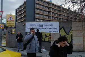 İstanbul Sefaköy’de Sol Parti İstanbul Vilayet Örgütü, “Şeriata faşizme karanlığa karşı Laik Devrimci Demokratik Cumhuriyet” yazılı bir pankart astı.