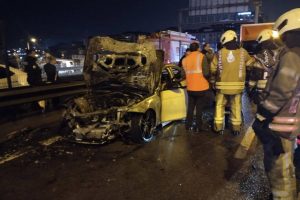 Olay, E-5 Karayolu Koşuyolu mevkii Ankara istikametinde meydana geldi. Edinilen bilgiye nazaran, 34 EE 805 plakalı araç seyir halindeyken şimdi belirlenemeyen bir nedenle motor kısmından alev aldı.