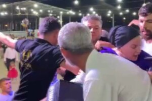 Kurtulmaya çalışan Solist’i boynundan tutan kuşkulu, öteki davetliler ve görevlilerin müdahalesiyle uzaklaştırıldı. O anlar, etraftakilerin cep telefonu kamerasına yansıdı.