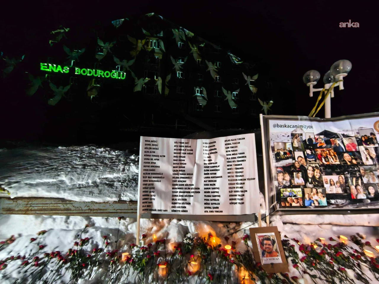 78 kişinin hayatını kaybettiği ve 133 kişinin yaralandığı Grand Kartal Otel yangının birinci yılında otel önünde anma merasimi düzenlendi.