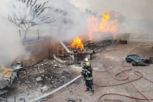 İtfaiye takımları, yangını söndürmek için çalışma başlattı.