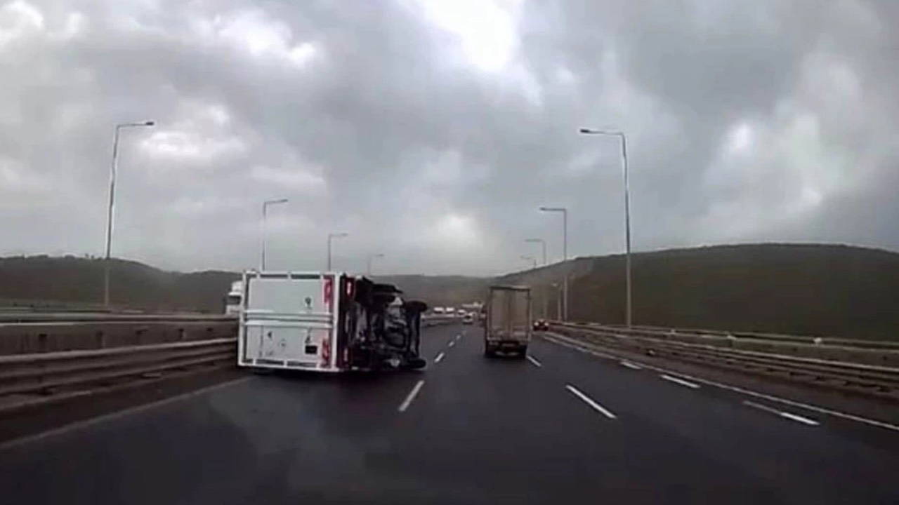 Şiddetli rüzgâr, Kuzey Marmara Otoyolu’nun Dilovası geçişinde kazalara neden oldu. Seyir halindeki iki tır ve bir kamyonet rüzgârın tesiriyle devrildi. Tırın devrildiği anlar güvenlik kamerasına yansırken, kazalarda baht yapıtı yaralanan olmadı. İmgelerde, başka araçların da rüzgâr nedeniyle savrulduğu görüldü.