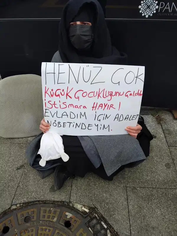 Mağdur çocuğun annesi D.Ş. ise adliye önünde adalet nöbetine başladı. Cumhuriyet’e konuşan D.Ş. yaşadıklarını, “Beni en çok üzen adalet nöbetindeyken beşerler önümden hiçbir şey olmamış üzere geçti, bir de üzerine para vermeyi teklif edenlerle karşılaştım. Kâbustaymışım üzere hissediyorum” dedi.