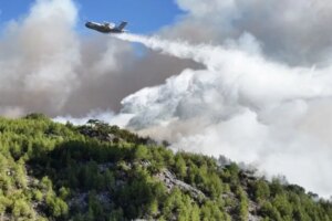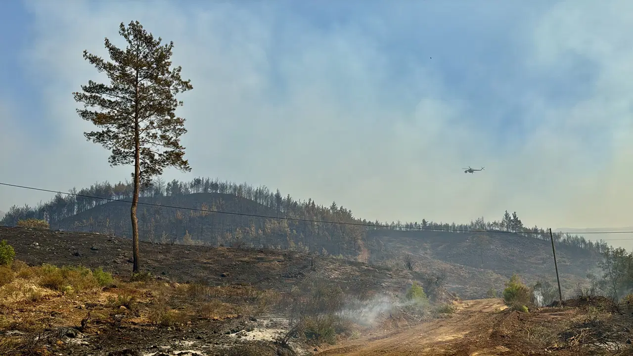 Yangının 2’nci gününde de günün aydınlanmasıyla hava araçları ağır sorti yaparak söndürme çalışmalarına dayanak sağlıyor. Bölgede rüzgar tesirli olurken, alevlerin önünün kesilmesi için takımların havadan ve karadan çalışmaları da sürüyor.