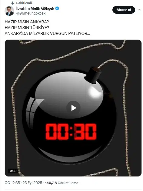 Hakkında birçok yolsuzluk tezi bulunan Gökçek, gece saatlerinde toplumsal medya hesabından “Hazır mısın Ankara? Hazır mısın Türkiye? Ankara’da milyarlık vurgun patlıyor…” tabirleri yazılı bir paylaşımda bulundu.