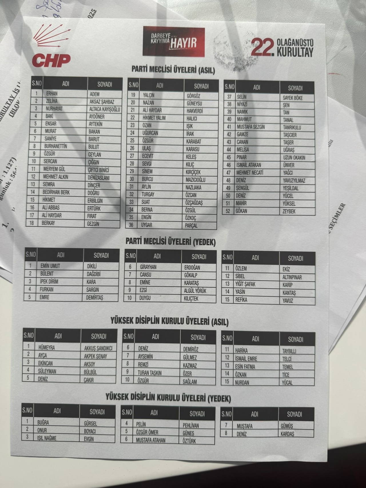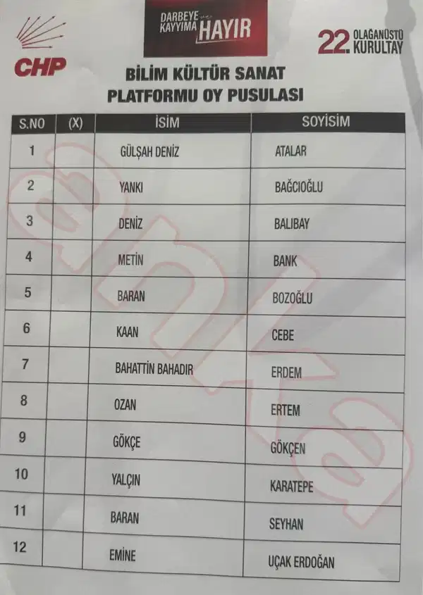 Parti Meclisi için ilan edilen blok listede Ahmet Hakan Uyanık yerine Sercan Çığgın yer alırken, Yüksek Disiplin Kurulu için açıklanan blok listede Çankaya İlçe Başkanı seçilen Ali Balta’nın yerine Edirne İl Başkanı Harika Taybıllı yer aldı.
