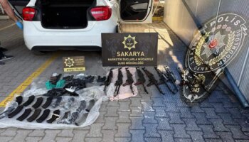 Sakarya'da polis memurunun aracında 9 kaleşnikof piyade tüfeği, 5 ruhsatsız tabanca ele geçirildi, zanlı gözaltına alındı.