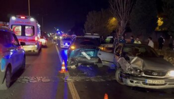 Tekirdağ'ın Çorlu ilçesinde polisin takibine takılan çalıntı araba, kovalamaca esnasında şoför geri geri kaçmaya çalışırken kaza yaptı. 2 kişinin yaralandığı kazada, çalıntı aracın içinden 9 yabancı asıllı şahıs çıktı.
