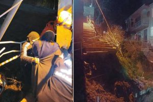 Edinilen bilgiye nazaran, bir binanın bitişiğinde bulunan merdivenin alt kısmı kuvvetli yağış sebebiyle çöktü.