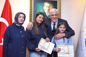 Öldürülen eski Ülkü Ocakları Genel Başkanı Sinan Ateş’in eşi Ayşe Ateş, kızları Bengisu ve Banuçiçek ile birlikte İYİ Parti Genel Lideri Müsavat Dervişoğlu’nu ziyaret etti.