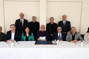 Pervin Buldan, Mithat Sancar ve Faik Özgür Erol‘un yer aldığı DEM Parti İmralı Heyeti, dün İmralı Cezaevi’nde terör örgütü PKK lideri Abdullah Öcalan ile yaptığı görüşmeye ait yazılı açıklama yayımladı.