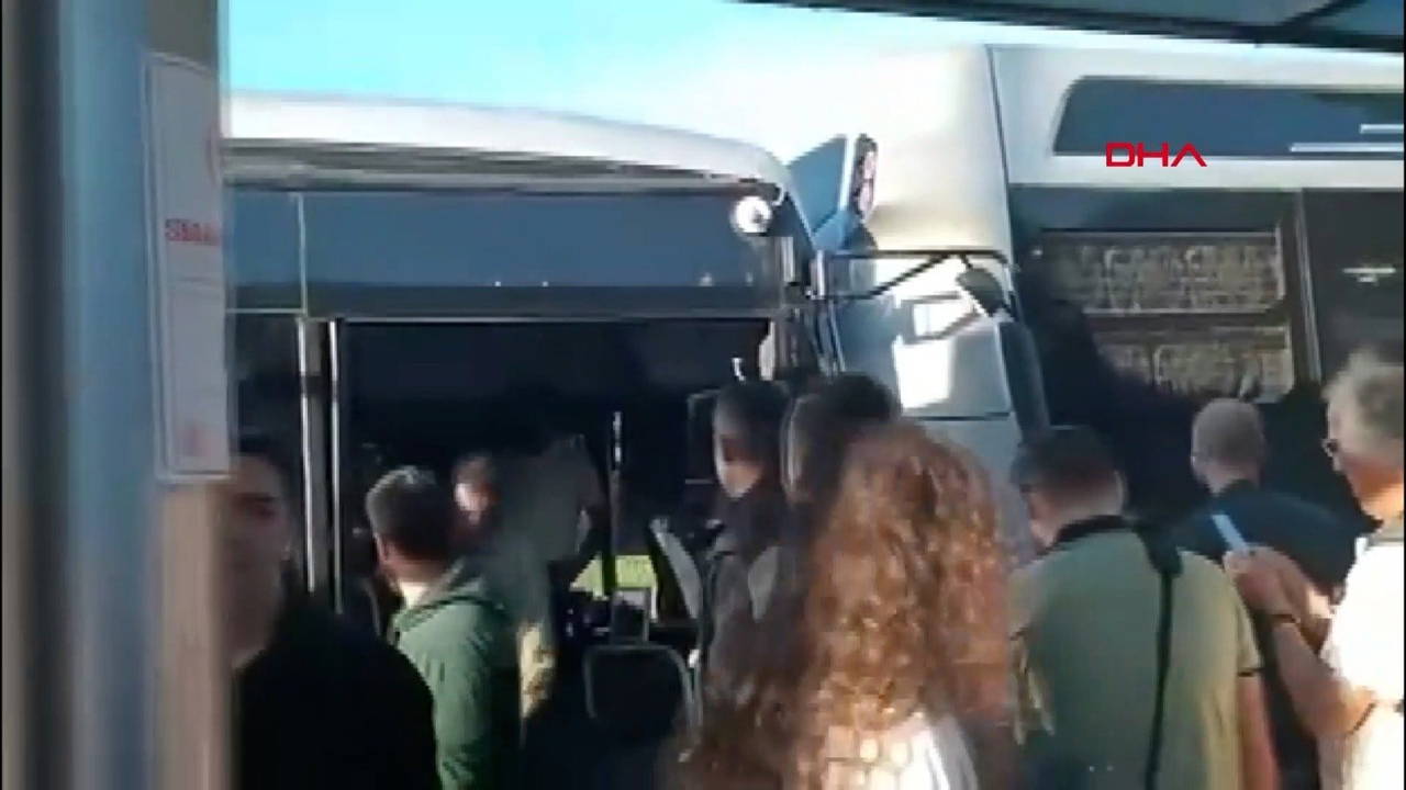 İstanbul Kadıköy’de bir metrobüs, Acıbadem metrobüs durağında bekleyen bir metrobüse arttan çarptı.