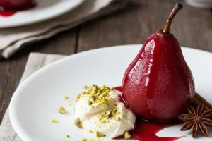 Tabaklarda bir yakut gibi parlayan: Hibiskus ve baharatlarla kırmızı poşe armut…