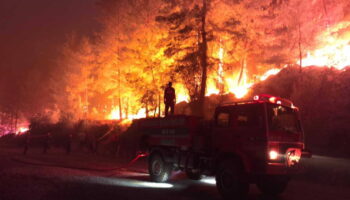Muğla’nın Köyceğiz ilçesinde çıkan orman yangınının 2’nci gününde, grupların müdahalesi sürüyor. Gece boyunca karadan yapılan söndürme çalışmalarında, günün birinci ışıklarıyla havadan müdahale de başladı.