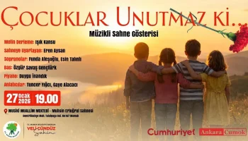 Mamak Belediyesi, Cumhuriyet gazetesi ve CUMOK iş birliğiyle hazırlanan “Çocuklar Unutmaz ki” müzikli sahne gösterimi, yakın tarihin acılarını çocukların gözünden sahneye taşıyarak 27 Ocak’ta Musiki Muallim Mektebi’nde izleyiciyle buluşacak.
