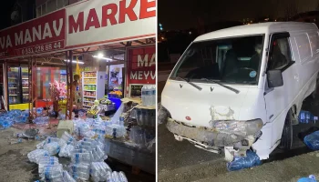 İstanbul Arnavutköy’de gece saatlerinde meydana gelen kazada, denetimden çıkan bir minibüs cadde üzerindeki markete daldı. Kaza anı güvenlik kamerası tarafından saniye saniye görüntülenirken, market içerisinde kimsenin manav reyonu önünde bulunmaması muhtemel bir faciayı önledi.