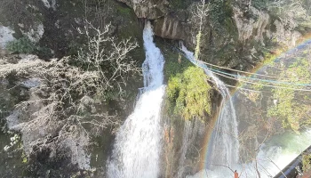 Bartın’ın Ulus ilçesinde ‘Aşk acısını dindiren şelale’ olarak ünlenen Ulukaya Kanyonu ve Şelalesi’nde, ağır kar yağışlarının akabinde kaya oyuğunda ikinci bir şelale oluştu. Görülmeye paha görüntü dron ile görüntülendi.