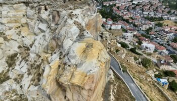 Kapadokya’da dün peribacasının büyük bir kısmının gece saatlerindeki yıkılmasının akabinde bugün de Ürgüp ilçesinin sembol noktalarından biri olan Kadıkalesi’nin ön kısmındaki kayalar düştü. Risk altındaki 3 meskende yaşayanlar tahliye edildi.