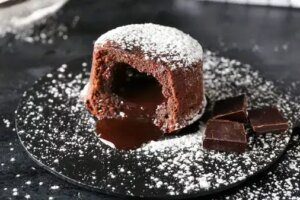 Fırından çıkan lav kekleri aksi çevirerek servis tabağına alın.