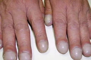 - Zamanla parmak uçlarında büyüme ve şişlik (yumuşak dokuda sıvı birikimine bağlı)