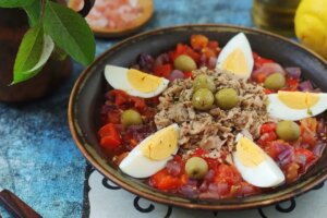 - Servis hazırlığı: Salatayı servis tabağına alın. Üzerine haşlanmış yumurta dilimleri, ton balığı ve siyah zeytin ekleyerek süsleyin.