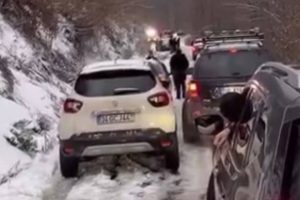 Kar görünümünü görmek isteyen birtakım yurttaşlar, araçlarıyla Çınarcık ilçesine bağlı Teşvikiye beldesinde bulunan Delmece Yaylası’na çıktı.
